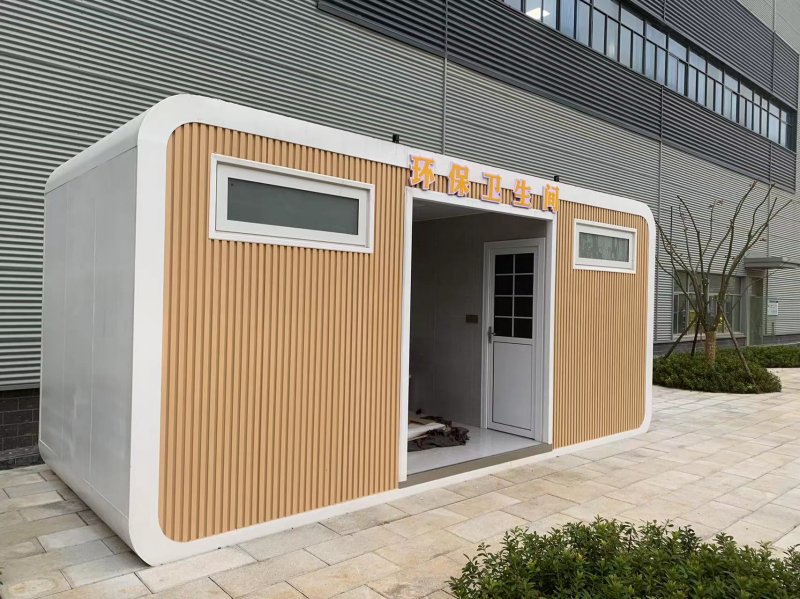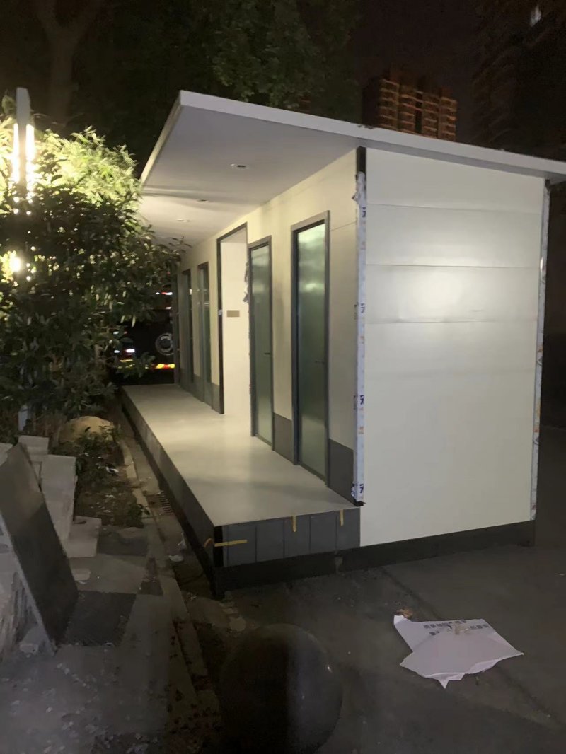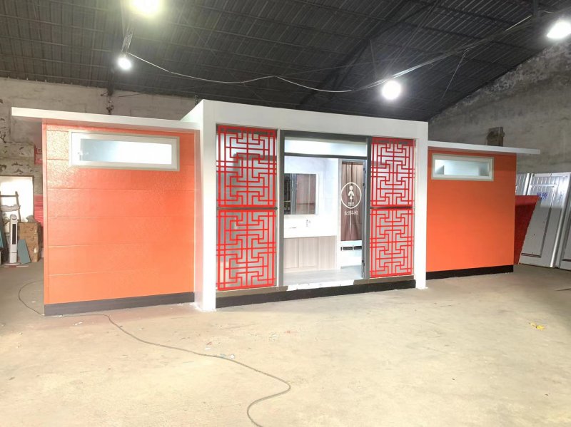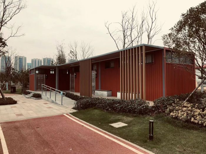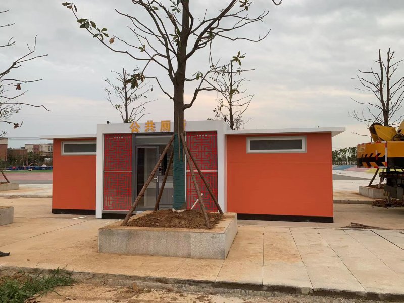 MORE拼裝廁所;在廠里做好各個廁所部件,再到現(xiàn)場組裝在一齊,適合不易運輸?shù)拇笮蛶?。這座箱式廁所,女廁5個蹲位內(nèi)配工具間,男廁2個蹲位+2小便斗,第三衛(wèi)生間由殘疾馬桶、助力洗手盆和兒童馬桶、兒童洗手盆外加嬰兒臺等設(shè)施。廁所前后有窗,通風采光,前部走廊裝有屋檐,防雨防曬。此廁所位于公路綠道邊,整體大氣,功能齊全,造型美觀,是一道難得的靚麗景觀!